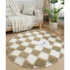 ラグ ラグマット チェッカー柄 サークル シャギーマット