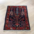 トルコの手織り絨毯 花と植物 90x63cm ネイビー&レッド 手織りラグ 草木染