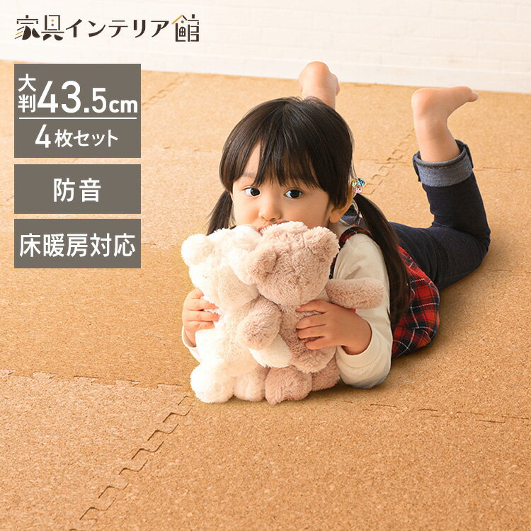 コルクマット 4枚セット ナチュラル COJTM-4508コルクマット 4枚セット ナチュラル 床暖房対応 ジョイントマット 防音対策 一年中 防水性 サイドパーツ付き 【D】