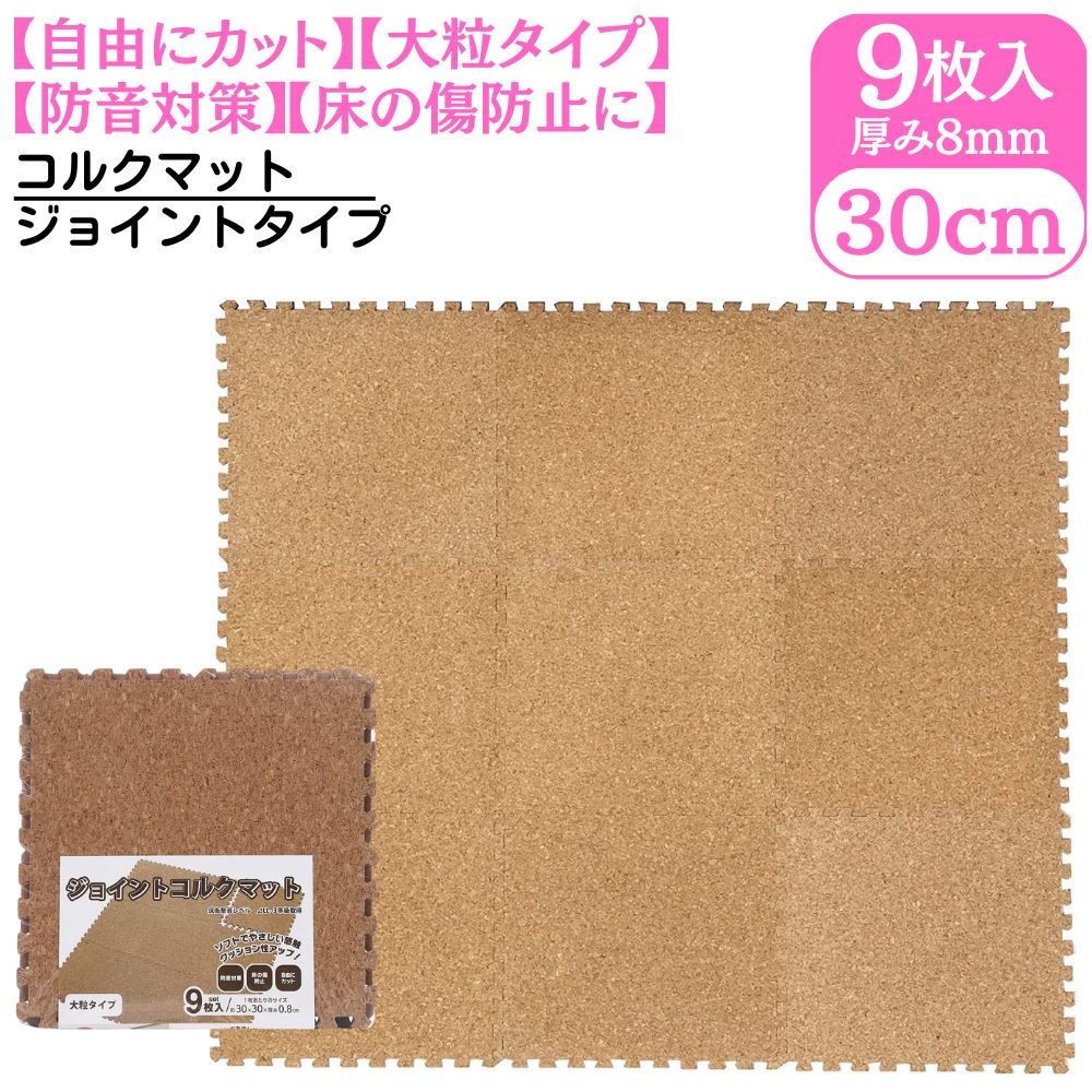 ジョイントコルクマット 9枚入り 厚さ0.8cm 0.5畳分 ( フロアマット ジョイントマット コルクマット タイルマット コルク ジョイント式 クッションマット 30cm 防音 衝撃緩和 保温 ノンホルムアルデヒド 赤ちゃん ペット )
