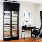 ラック 棚 ガラス コレクション 飾り棚 扉付き おしゃれ スリムラック 薄型 ディスプレイ キャビネット 幅48.5cm 本体+上置き