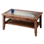 センターテーブル コレクションテーブル ガラス天板・引出し付 ROUEN カントリー パイン無垢材