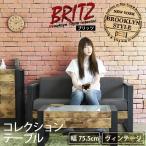 ローテーブル センターテーブル 幅75 奥行48 高さ35 引き出し ガラス テーブル ブルックリンスタイル コレクション テレワーク 在宅