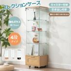 コレクションケース 4段 LEDライト付き ガラス ガラスケース 4段両扉タイプ スリム コレクションシェルフ ガラスディスプレイキャビネット 強化ガラス 飾り棚