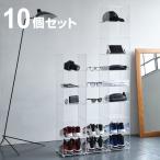 シューズラック 3段 10個セット 透明 ( クリア 収納ボックス 玄関収納 靴収納 ディスプレイ ボックス 幅26 奥行29 高さ56 10個 コレクションケース )