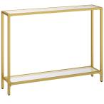 【並行輸入品】HOOBRO 39.5インチ ナローコンソールテーブル 強化ガラス玄関テーブル ゴールドソファテーブル メタルフレーム リビングル