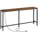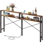 【並行輸入品】HOOBRO 63インチ ナローコンソールテーブル 充電ステーション付き 5.9インチ ソファテーブル 2つの電源コンセントとUS