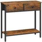【並行輸入品】HOOBRO 29.5インチ ナローコンソールテーブル 布製引き出し2個付き 小型玄関テーブル 2段収納棚付き 薄型ソファテーブル