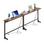 【並行輸入品】Aduanbang 78.7インチ コンセント付きナローコンソールテーブル ソファテーブル 2枚セット ソファテーブル後ろテーブル