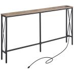 【並行輸入品】ELYKEN コンセント付きコンソールテーブル 幅63インチ リビングルーム用ソファテーブル 充電ステーション付きロングスリムテー