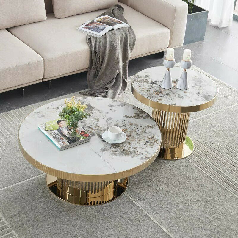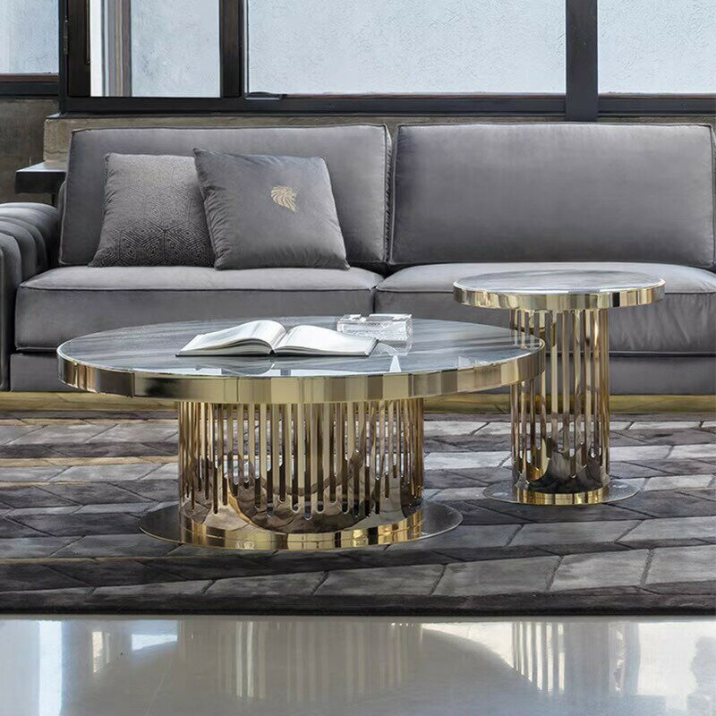 高級大理石サイドテーブル2点セット コンソールテーブル 玄関テーブル 飾り台 ローテーブル リビングテーブル ステンレス