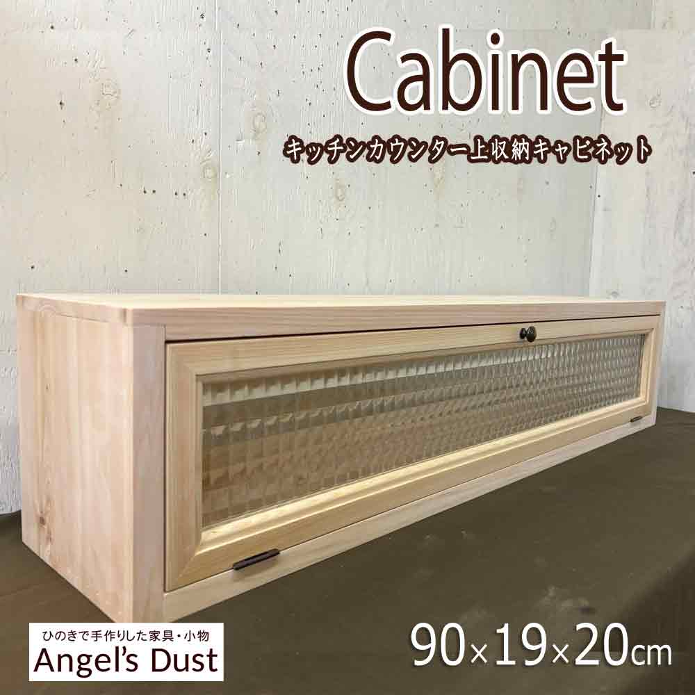 【期間限定10%OFF】キャビネット 横型 90×19×20cm キッチンカウンター上収納 真鍮つまみ 木製 ひのき ハンドメイド オーダーメイド