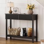 【並行輸入品】Saicool 2段コンソールテーブル 木製ナローソファテーブル 収納棚付き 40インチ 玄関テーブル ディスプレイテーブル