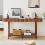 【並行輸入品】P PURLOVE 木製コンソールテーブル 引き出し付き 長さ58インチ ソファテーブル 狭い玄関テーブル 底棚付き リビングルー