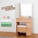 ドレッサー 一面鏡 幅60cm コンパクト ミラー スツール付き 収納付き 一口コンセント付き 引き出し ホワイト 木目柄 光沢 艶