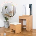 ドレッサー コンパクト 完成品 幅68cm デスク おしゃれ 可愛い パソコンデスク 無垢 テーブル 白 北欧 椅子付き ミラー
