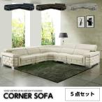 コーナーソファー 5人掛け 6人掛け 5点セット 本革 合皮 バージンウレタン コーナーソファセット リビングソファセット ソファー 大人数 高級ソファー 応接ソファ コーナーソファ フロアソファー ブラック ホワイト グレー おしゃれ