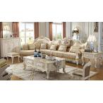 応接セット 4点 イタリア製 BM Style センターテーブル付き クッション7個 肘掛カバー付 コーナーソファー ソファセット テーブル ヨーロピアン クラシック アンティーク ロココ調 カウチソファー 2人掛 1人掛 開梱設置 送料無料
