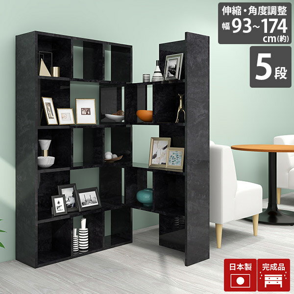 オープンラック ディスプレイラック ブラック 5段 ラック 飾り棚 本棚 モダン 奥行30 完成品 収納 鏡面 組立不要 黒 北欧 おしゃれ ブックシェルフ コーナーラック 高級感 シェルフ L型 伸縮ラック 美容室 待合 仕切り 棚 大理石柄 収納棚 オープンシェルフ 【R+R90-5】 ☆