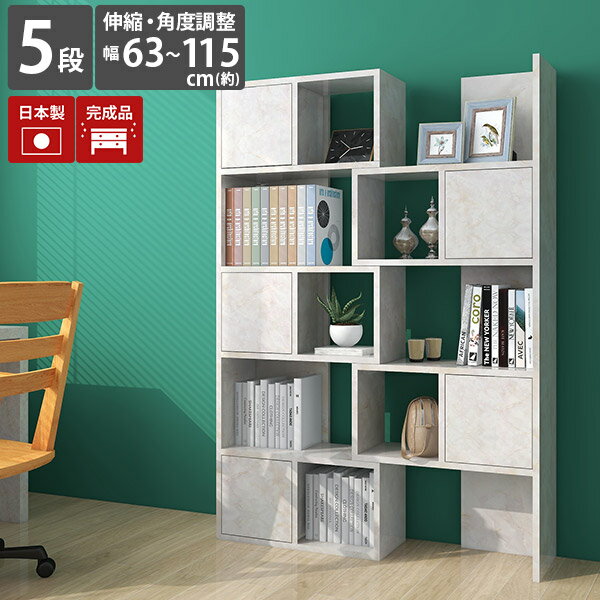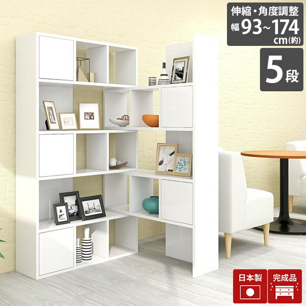 伸縮ラック 収納棚 オープンラック ラック 棚 リビング収納 ハイタイプ 本棚 ディスプレイラック 5段 モダン 間仕切り 収納 鏡面 おしゃれ 扉付き 高級感 北欧 完成品 扉付 A4 スライド 書類 キャビネット 日本製 国産 リビングボード コーナーラック 伸縮 【R+R-DX60-5】 ☆