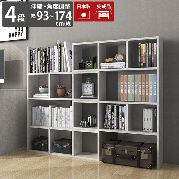 ラック 伸縮 オープンラック 横長 本棚 4段 奥行30cm リビング収納 ディスプレイラック 完成品 待合室 本 おしゃれ 仕切り棚 飾り棚 洋風 コーナー ディスプレイ 書斎 棚 4段ラック ワイド フリーボード オープンシェルフ 鏡面 収納 シェルフ コーナーラック GS R+R90-4 ☆