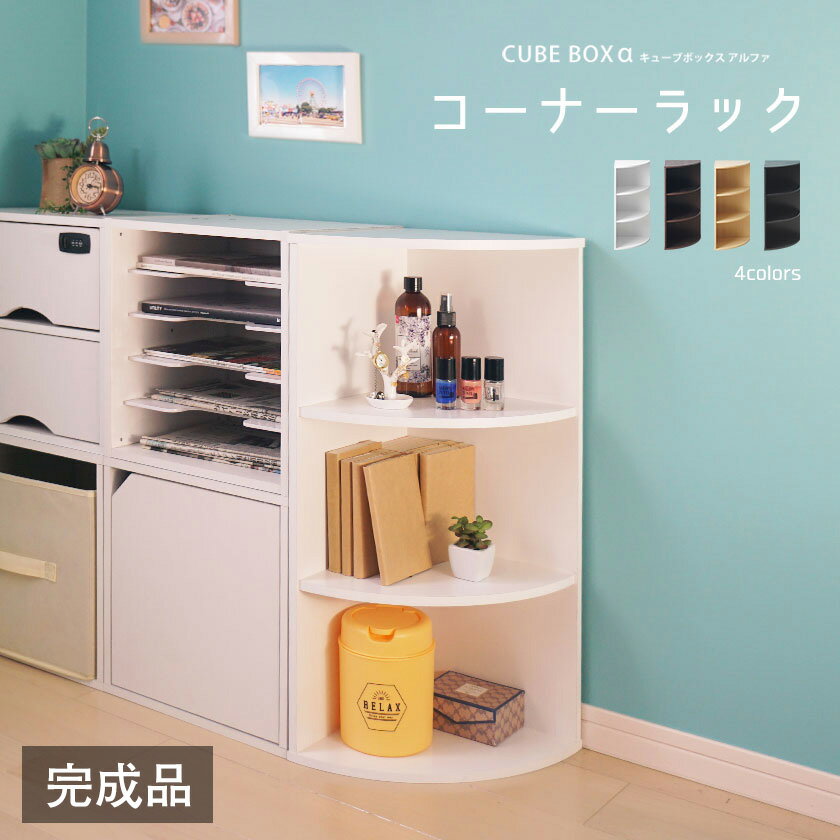 【30日★50枚★5%OFFクーポン】 【完成品】 キューブボックスα コーナーラック おしゃれ スリム 木製 玄関 リビング カラーボックス コーナー 三角棚 トイレ キッチン コーナー棚 カウンター下 収納棚 洗面所 収納ラック オープンラック 3段 幅30 奥行30