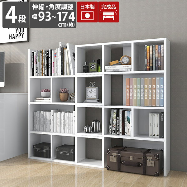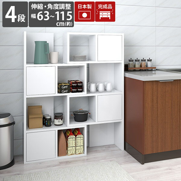 オープンラック 完成品 ディスプレイラック 4段 本棚 オープンシェルフ 収納棚 ラック 横長 おしゃれ 北欧 棚 コーナーラック ディスプレイ 伸縮 伸長 スライド リビング収納 4段ラック 間仕切り コーナー 洗面所 デザインシェルフ 幅80 約幅120 約奥行30 ブックシェルフ ☆