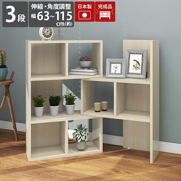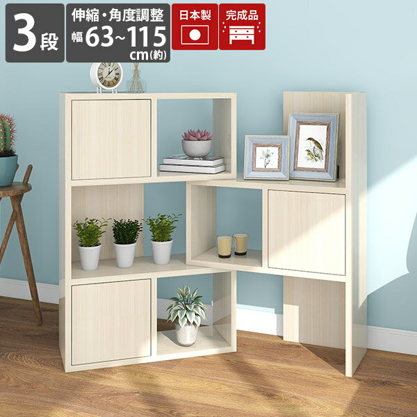 伸縮ラック 収納棚 オープンラック リビング収納 ディスプレイラック 伸縮 白 本棚 シェルフ 3段 ホワイト 木目 鏡面 扉付き スライド ラック 3段ラック ディスプレイ 北欧 扉付 A4 間仕切り 収納 完成品 おしゃれ コーナーラック キャビネット 日本製 【R+R-DX60-3】 ☆