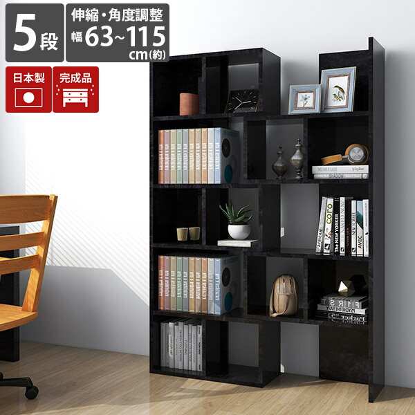 オープンラック リビング収納 日本製 北欧 ディスプレイラック ブラック 伸縮 本棚 5段 高級感 伸縮ラック 黒 鏡面 飾り棚 ラック モダン シェルフ a4 奥行30cm コーナーラック オープンシェルフ 間仕切り ディスプレイ キッチン 棚 服 パーテーションラック 【R+R60-5】 ☆