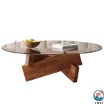 ガラステーブル/ローテーブル/ラウンドコーヒーテーブル/コーヒーテーブル/ガラスコーヒーテーブル/ガラスセンターテーブル/強化ガラストップ/無垢材素材/リビン