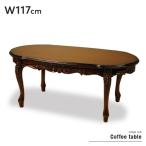 コーヒーテーブル 大 117 アンティーク調 楕円 木製 クラシック カフェテーブル ダイニングテーブル