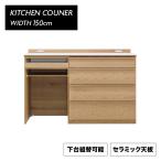 ゴミ箱収納 キッチンカウンター 食器棚 ロータイプ 幅150cm 木製 ナチュラル セラミック天板 引き出し コンセント付き