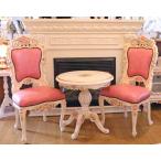 ロココ調 ティーテーブルセット 60cm ラウンドテーブル 3点セット チェア 本皮 クラック仕上げ 白家具 アンティーク エレガント おしゃれ サイドテーブル