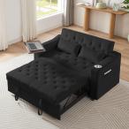 【並行輸入品】53インチ コンバーチブルスリーパーソファベッド 調節可能な背もたれ、長椅子、サイドテーブル、USB/Type Cポート付き