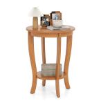 【並行輸入品】GOFLAME 2段ラウンドエンドテーブル 18インチ ソファサイドテーブル 収納棚付き フロアティーテーブル 無垢材の脚付き コ