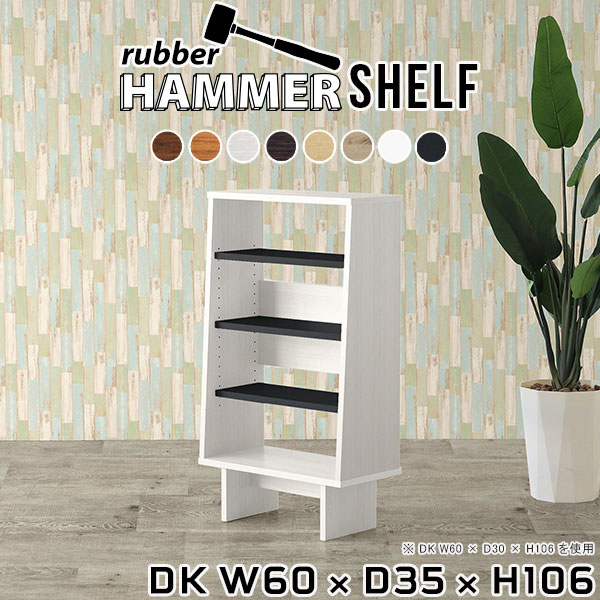 オープンラック スリム 棚 白 ラック おしゃれ 多目的棚 ディスプレイラック 文庫本 小型 本棚 ハイタイプ 脚付き ホワイト 木製 黒 4段 サイドラック スリムラック オープンシェルフ マガジンラック ブラック 日本製 【幅60 奥行35 高さ106cm HammerShelf DK 木目】 ★