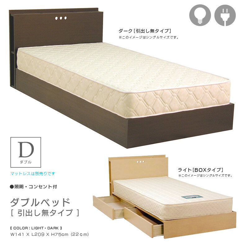 \全商品に使える2%offクーポン!!/ ベッドフレーム ダブル 収納 引き出し付き ダブルベッド ちょい棚付き ヘッドサイド棚 おしゃれ シック モダン コンセント付き 北欧 ライト付き ベッド ダブル 国産 木製 選べる2色 ライト ダーク