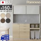 開梱設置付 パモウナ RU キッチンカウンター 食器棚 ロータイプ 幅160 完成品 日本製 オープン RU-S1602R キッチンボード 石目調 木目調 艶消し 収納 ラック