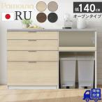 開梱設置付 パモウナ RU キッチンカウンター 食器棚 ロータイプ 幅140 完成品 日本製 引出 RU-S1400R キッチンボード 石目調 木目調 艶消し 収納 ラック 下台