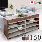 シェルフ 木製 ラック おしゃれ 幅150cm 国産 日本製 収納 間仕切り 薄型 隙間収納 スリム コンパクト 背面オープン 可動棚 天然杢 ヒノキ材