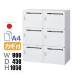 クウォール 6人用 2列3段メールボックス シリンダー錠 鍵付き ホワイト 幅900×奥行450×高さ1050mm パーソナルロッカー RW45-610P-S2 国産 完成品