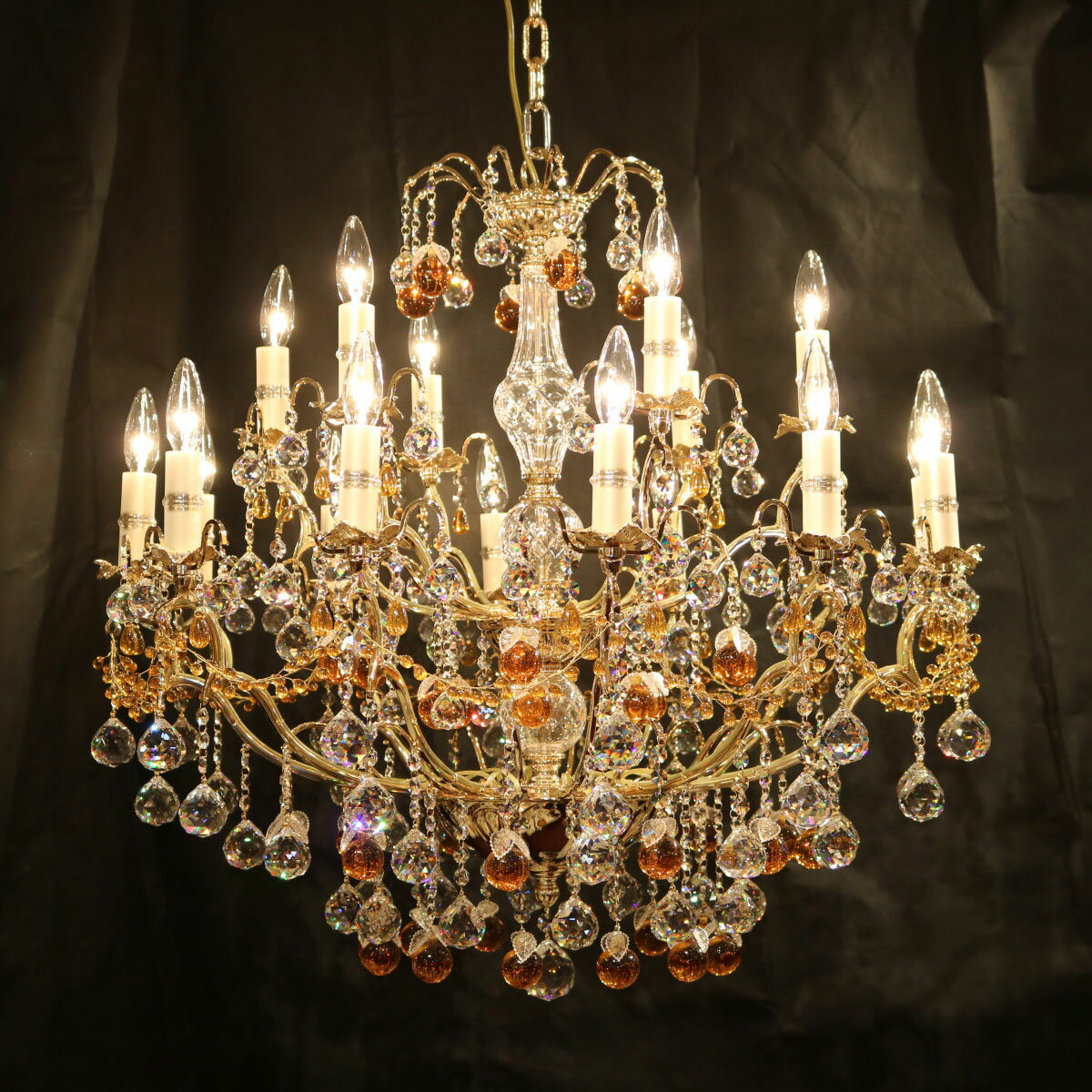 ボヘミアン グラス シャンデリア CH-18DT LED電球対応 18灯 高級 ボヘミアン クリスタル 輸入 ゴールド LED 照明 天井照明 調光対応 受注生産