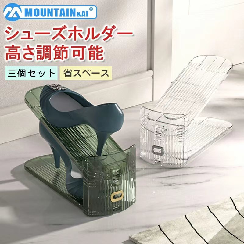 \店内全品10%OFF/シューズホルダー 引き出し穴付き 三段階調節 3個セット 大きいサイズ シンプル 省スペース 重ね シューズボックス 滑り止め 下駄箱収納 安定 幅10cm ワイド 玄関収納 靴収納 送料無料