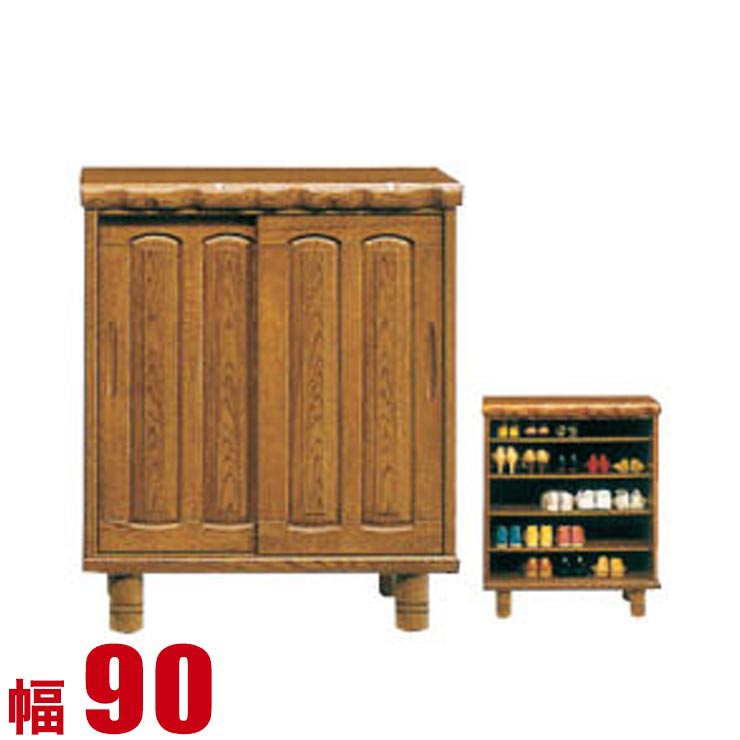 ★10%OFF★ 下駄箱 大川家具 シューズボックス 家具 棚 玄関収納 和風 高級 幅90cm シューズボックス 引き戸 完成品 日本製