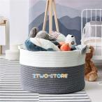 綿ロープバスケット収納かご洗濯かご付き、おもちゃカーペット収納かご、大容量51*35 cm
