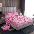 【並行輸入品】Feelyou 桜シーツ キングサイズ 枕カバー2枚付き 和風ベッドシーツセット サクラフラワー寝具セット グラデーションピンク
