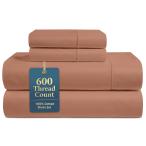 【並行輸入品】VKhome Linen イージーケア エジプト綿シーツ クイーンサイズベッド用 600スレッドカウント 4ピースベッドシーツ