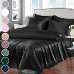 【並行輸入品】Homiest サテンシーツ クイーンサイズベッドセット 7点 ブラック ラグジュアリー シルキーサテン寝具、1 ディープポケ