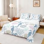 【並行輸入品】Erosebridal Sea Coastal ベッドシーツ クイーンサイズ、タツノオトシゴヒトデ コンク貝 海洋生物 海洋生物