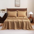 【並行輸入品】LBRO2M 冷却ベッドシーツ 100% ビスコース由来竹シーツセット クイーンサイズ 4ピース、40.62cm ディープポケット